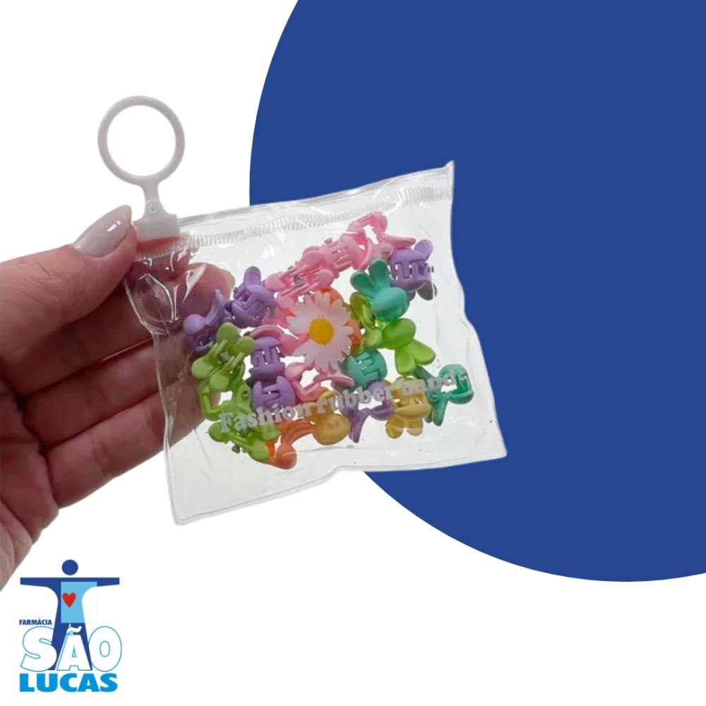Kit com mini piranhas coloridas ideal para compor penteador de crianças e adultos.