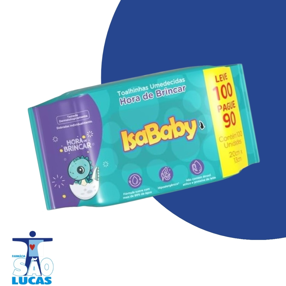 As Toalhas Umedecidas Isababy Hora de Brincar 90 Unidades L100 foram criadas para cuidar da pele delicada do bebê com suavidade e segurança. Sua fórmula contém 99% de água, não possui álcool etílico nem proteína do leite e é hipoalergênica. Dermatologicamente testadas, removem impurezas de forma eficiente e ainda hidratam com aloe vera e vitamina E. Perfeitas para manter a pele do bebê limpa, fresca e protegida a qualquer momento.
