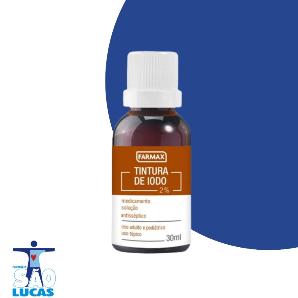 Tintura de Iodo 2% Farmax é indicado como antisséptico em curativos no tratamento de feridas. Modo de Usar Uso Externo. Aplicar topicamente em curativos no tratamento de feridas. Restrição de Uso Pode causar intoxicações pelo iodo em neonatais e gestantes. Advertências Ao aplicar a tintura de iodo na pele não cobrir o local com tecido oclusivo. O produto não deve ser usado em casos de feridas abertas (pode resultar em absorção do iodo) e em curativos oclusivos.