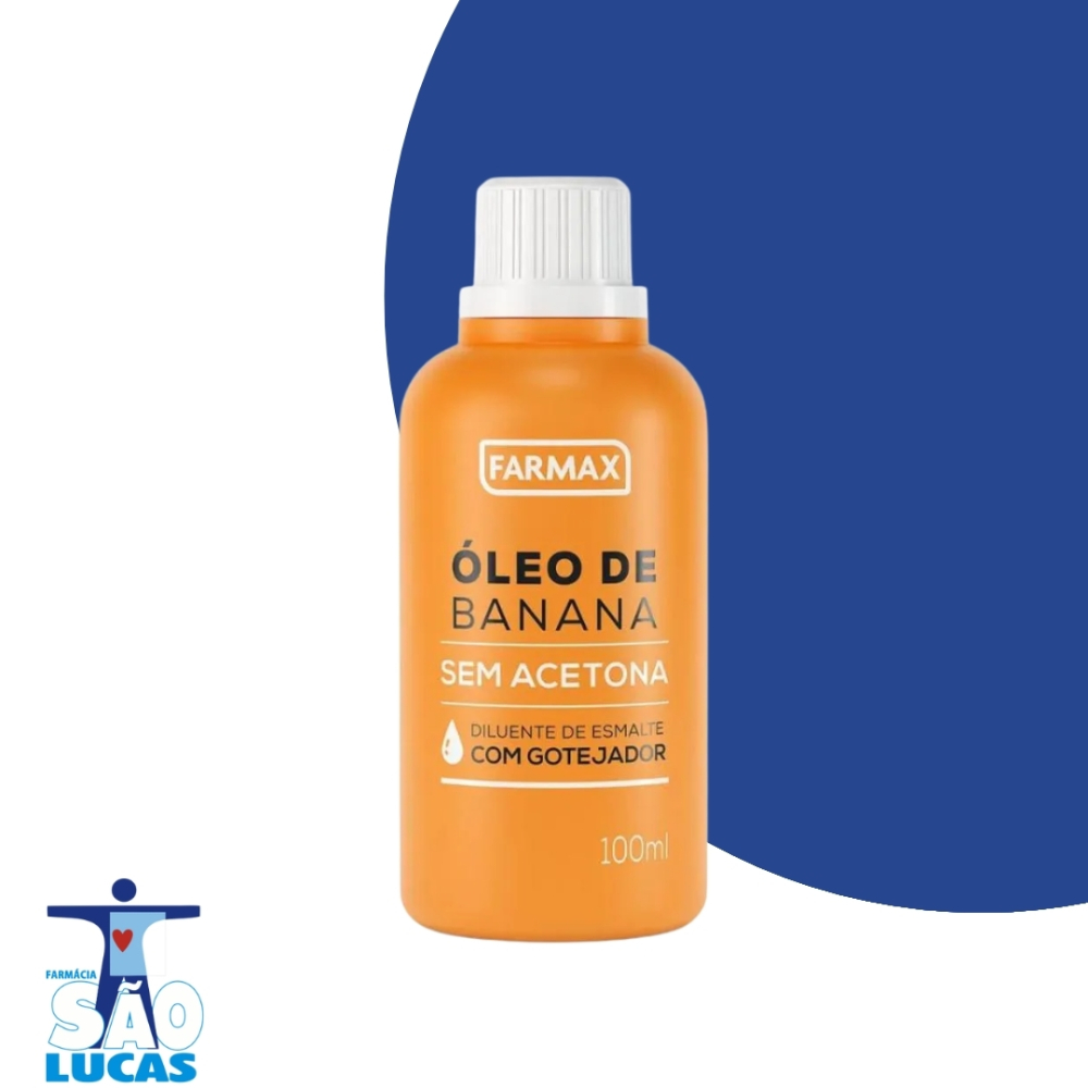 Diluente Óleo de Banana Farmax sem Acetona 100mL Sem acetona na fórmula, o Óleo Banana Farmax é usado como diluente de esmalte com eficácia. O produto protege sua unha do calor e também pode ser usado como removedor de esmaltes sem ressecar as unhas e cutículas. A embalagem é bem forte e o dosador é ótimo, assim rende muito, pois além disso, só umas gotinhas já servem para sua eficácia. Disponível em embalagens de 28 e 100mL. Para que serve? Tem como principal função diluir esmaltes, porém também pode ser usado na remoção deles. Como usar Aplicar 5 gotas no esmalte quando ele estiver duro e está pronto. Advertências Uso externo. Produto volátil e inflamável. Em caso de irritação, suspender o uso e procurar orientação médica. Manter fora do alcance de crianças. Composição Isoamyl Acetate e Alcohol.