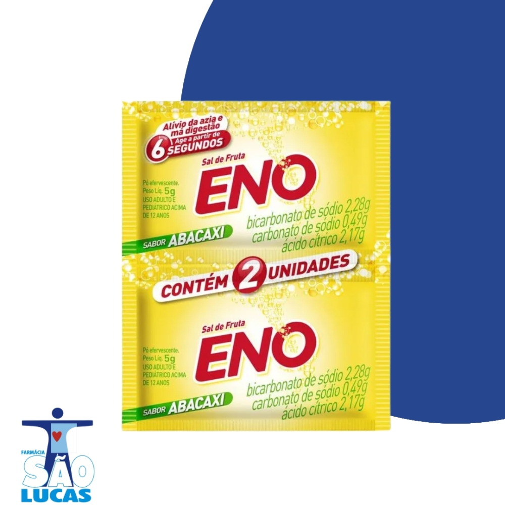 O Sal de Fruta Eno Abacaxi é um antiácido em pó efervescente, indicado para o alívio rápido da azia, má digestão, excesso de acidez estomacal e indigestão ácida. Sua fórmula exclusiva, que combina bicarbonato de sódio, carbonato de sódio e ácido cítrico, reage ao ser dissolvida em água, reduzindo a acidez do estômago em cerca de 6 segundos. Ideal para adultos e crianças conforme orientação médica, oferece praticidade e eficácia para quem busca conforto digestivo imediato.