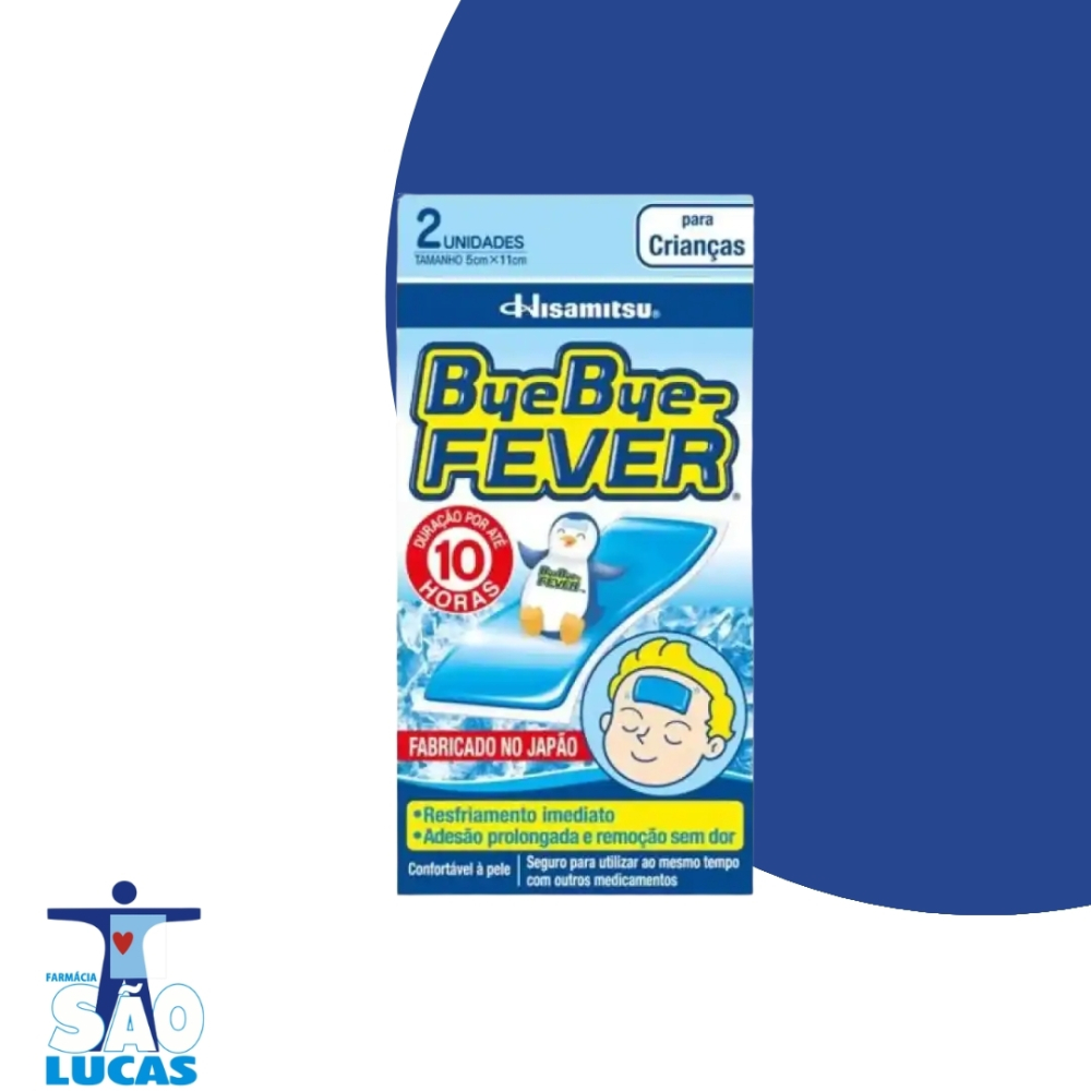 Adesivo para Alívio da Febre Bye Bye Fever Criança - 2 pacotes com 2 unidades cada O Bye Bye Fever é um cuidado complementar para tratamento da febre que pode ser associado com o uso de outros medicamentos. Ele promove resfriamento local, auxiliando na diminuição da febre. Possui resfriamento imediato, adesão prolongada e remoção sem dor. Indicado para auxiliar no combate à febre em Crianças, Bye Bye Fever para crianças possui os seguintes benefícios: Auxilia na diminuição da febre. Possui segurança dermatológica. Promove redução da temperatura local. Não é um medicamento. Efeito gelado por 8h. Tecnologia Japonesa. Praticidade Alternativa à compressa gelada. Aderência prolongada.