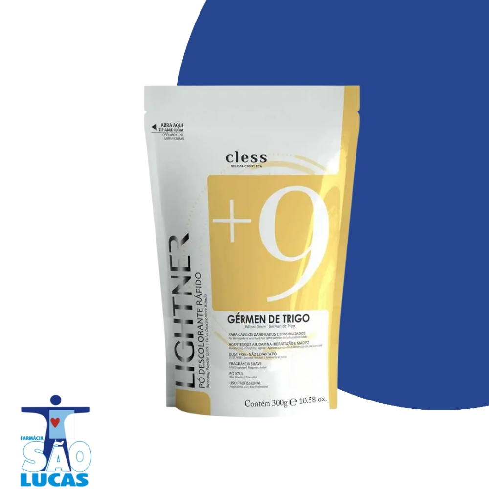 Pó Descolorante Lightner Refil 300g Germen De Trigo - Cless O Pó Descolorante Germen de trigo Lightner da Cless é um produtinho incrível que facilita a descoloração trazendo um excelente resultado em poucos minutos. Sua fórmula é composta por proteínas, antioxidantes, minerais e vitaminas que deixam a pele macia e hidratada, previne o envelhecimento precoce da pele, e também os fios ressecados, além de selar as cutículas e reduzir os frizz ele também protege contra os danos causados pela descoloração, deixando seu cabelo hidratado, brilhoso e sua pele macia e saudável. Indicação: Para descoloração de cabelo e pelos. Modo de uso: Acrescente a medida desejada do pó descolorante Lightner em um recipiente não metálico e adicione aos poucos o oxidante, misture com uma espátula não metálica ate formar um creme de consistência homogênea. Siga rigorosamente as instruções de uso e faça os testes de toque e mechas antes de aplicar. Em pelos do corpo utilize 2 medidas de loção Reveladora Lightner para 1 de Pó Descolorante Lightner. A aplicação deverá ser feita sobre os pelos secos, apos o tempo de ação, deve-se lavar para retirar totalmente o produto. No cabelo utilize 2 ou 3 medidas (a proporção pode variar de acordo com a viscosidade desejada) da Água Oxigenada Cremosa Lightner para 1 de pó descolorante Lightner. A aplicação deverá ser feita sobre os cabelos secos e não lavados, iniciando na nuca ou nas partes mais escuras. Apos o tempo de ação, deve-se lavar o cabelo como de costume para retirar totalmente o produto.