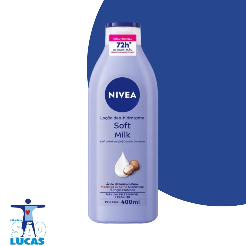 Nivea Soft Milk é um hidratante corporal formulado com Manteiga de Karité, um ativo com alto poder de hidratação para a pele seca. Deixa a pele macia, suave e nutrida, protegendo contra o ressecamento. Ainda: possui rápida absorção, 48 horas de hidratação e sua fórmula não contém corantes, álcool etílico e ingredientes de origem animal. Use diariamente para uma pele macia e bem cuidada.