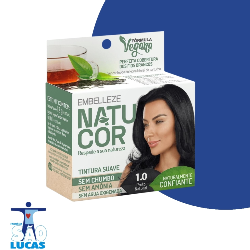 Tintura Vegana Natucor 1.0 Preto Natural A Tintura Em Pó Natucor Embeleze é uma coloração natural que proporciona uma coloração maravilhosa aos cabelos sem danificá-los, deixa as cores da natureza em seus cabelos. Natucor utiliza nutrientes de ervas, flores e frutas da flora mundial, principalmente da Amazônia para proporcionar cores incríveis e duradouras aos fios capilares, cores radiantes, brilho intenso, hidratação profunda e uniformidade aos cabelos. Sugestão de Aplicação Depois de escolher a sua coloração, vem o momento de se preparar para o tingimento. A preparação exige no mínimo dois dias sem usar produtos que necessitem de enxágue, além disso, o cabelo deve estar seco. Para aplicar, divida o cabelo em quatro partes e depois passe a tintura com o auxílio de um pincel. Comece sempre pela raiz e vá descendo até as pontas. Resultado Vai deixar seus cabelos com uma cobertura totalmente uniforme e com uma cor intensa e radiante, você vai adorar!