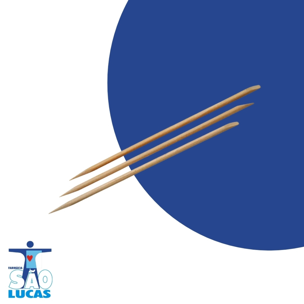 Palito de unha laranjeira descartável Santa Clara, com um dos lados com ponta chanfrada, acessório essencial para empurrar as cutículas e corrigir erros de aplicação do esmalte, dando um ótimo acabamento às unhas. Pode ser utilizado para limpeza da pintura das unhas e para unhas artísticas.