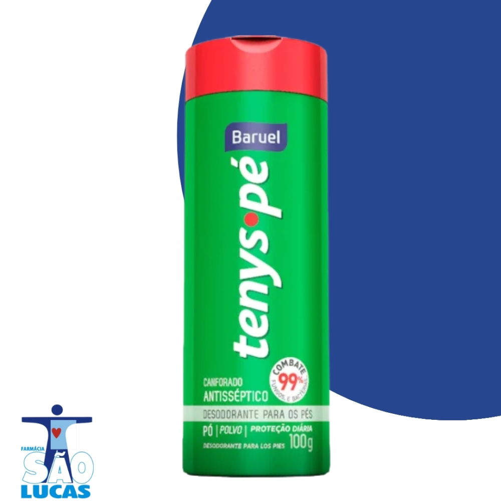 O Talco para os Pés Tenys Pé Baruel Canforado 100g foi elaborado para manter todos os tipos de pés secos, frescos e perfumados, eliminando os odores da transpiração. Sua fórmula específica contém elementos que agem de forma eficaz através de sua ação desodorante, antisséptica e refrescante.