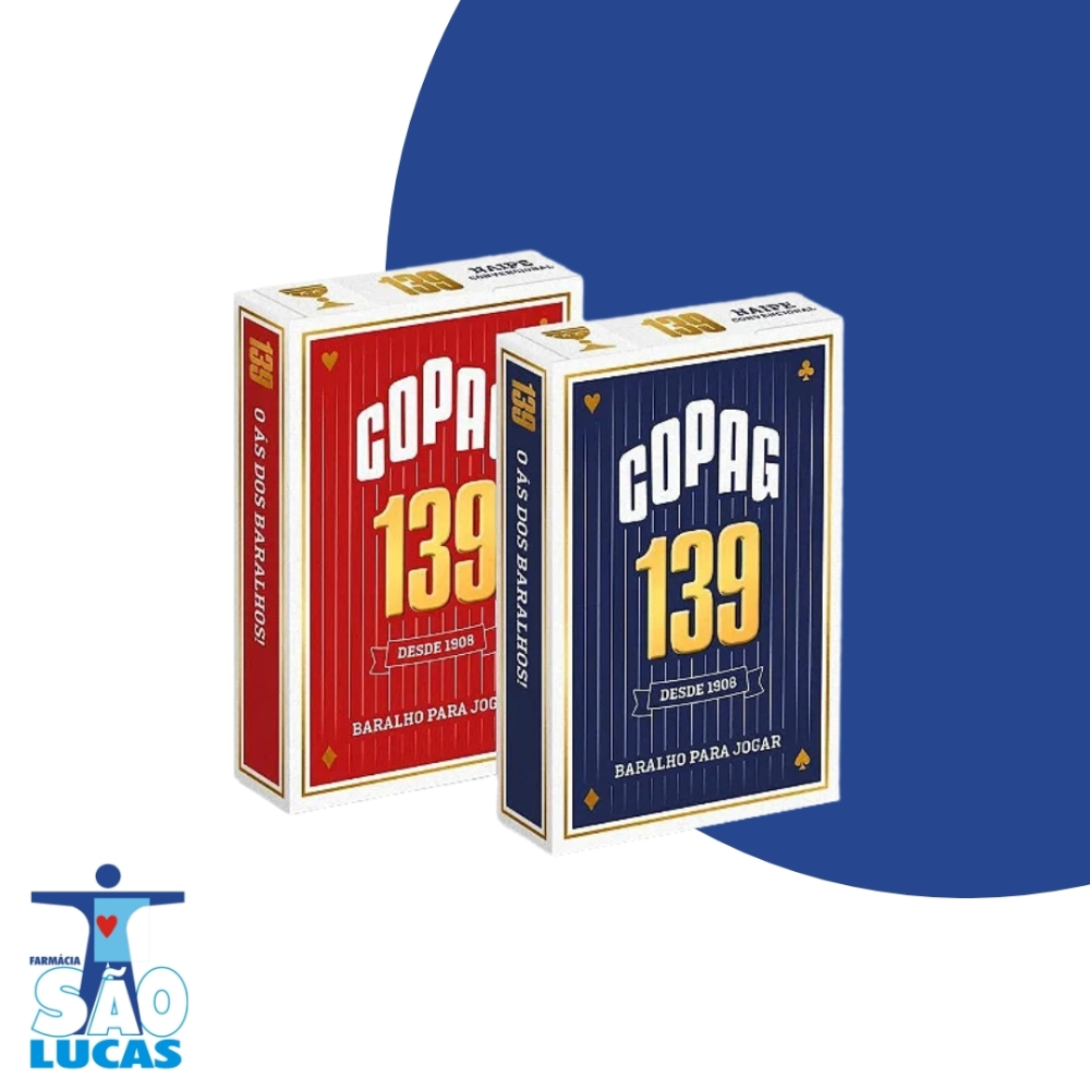 São referência em excelência de qualidade no mundo todo. Possuem fácil deslize e são de agradável manuseio. O Baralho 139 é o mais famoso da linha de baralhos Copag e o Baralho Tradicional mais querido do Brasil. Fabricado desde 1923 e se mantém um produto de tecnologia inovadora, produzido em cartão de alta qualidade, que garante grande durabilidade e conforto no manuseio. As cartas do Baralho 139 Tradicional Copag são do tamanho Bridge Size (57x89mm) e produzidas em exclusivo cartão couché 290gr, não transparentes, atóxicas e recicláveis. Aqui na Copag Loja você encontra o Baralho 139 Tradicional disponível em naipe grande nas cores azul e vermelho