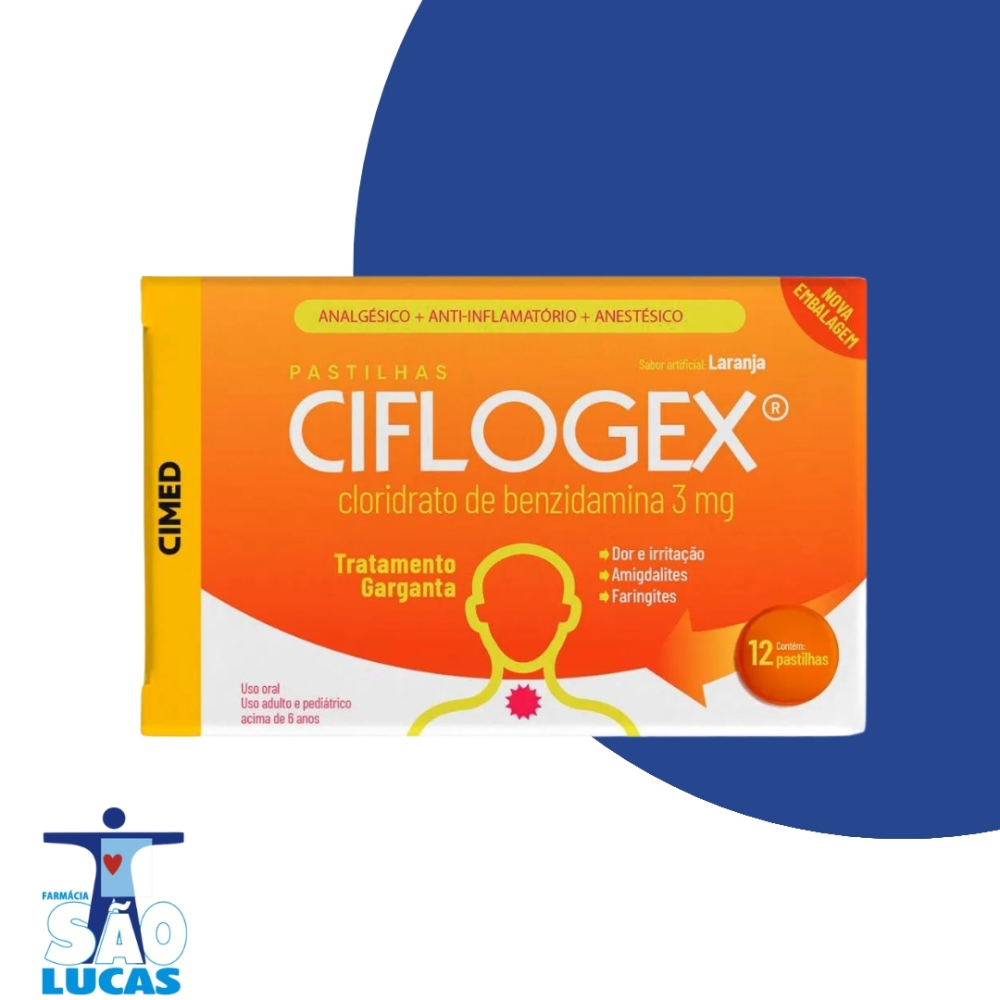As Pastilhas para Garganta Ciflogex Mel e Limão são indicadas para o alívio de processos inflamatórios e dolorosos na boca e garganta, como aftas, dor de dente, inflamação da garganta e sintomas de gripes e resfriados. Com ação anti-inflamatória, analgésica e anestésica, proporcionam conforto rápido e eficaz, sendo ideais para adultos e crianças acima de 6 anos que buscam um cuidado prático e saboroso. Recomenda-se dissolver uma pastilha na boca duas ou mais vezes ao dia, sem ultrapassar 10 pastilhas diárias, evitando partir ou mastigar. É importante seguir a orientação médica e ler a bula antes do uso. O produto não é indicado para menores de 6 anos, diabéticos, pessoas alérgicas ao cloridrato de benzidamina ou aos componentes da fórmula, e gestantes sem orientação médica. Contém corante amarelo de tartrazina, que pode causar reações alérgicas em pessoas sensíveis. Cada pastilha contém 3 mg de cloridrato de benzidamina, com excipientes que conferem sabor artificial de mel e limão, além de sacarose, glicose e corante amarelo de tartrazina. Apresenta-se em forma de pastilha para uso oral, com embalagem contendo 12 unidades. O produto é vendido sob prescrição médica, indicado para tratamento analgésico e anti-inflamatório da garganta, garantindo alívio eficaz e seguro para quem sofre com desconfortos bucais e faríngeos.