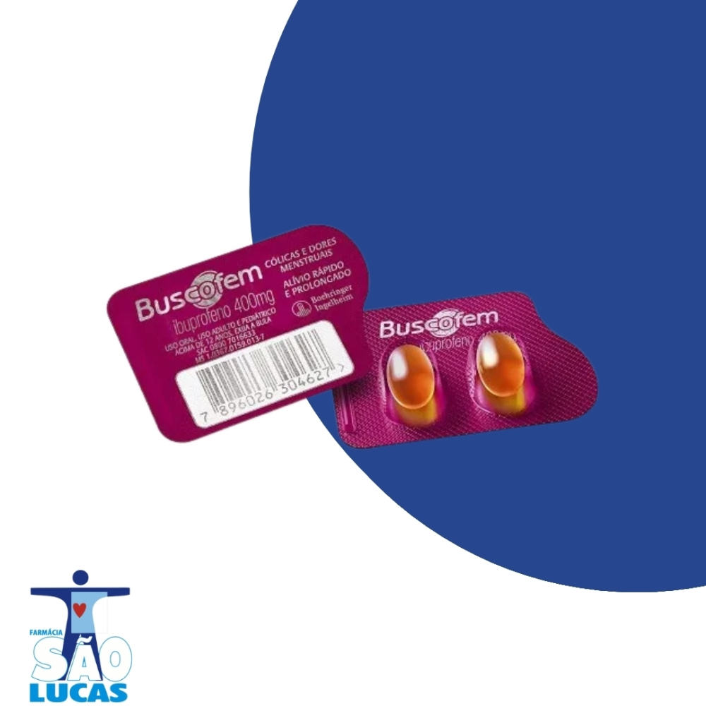 Buscofem 400mg 2 Cápsulas Avulsos é um medicamento indicado para o alívio de dores de cabeça, cólicas menstruais e outras dores de intensidade moderada. Cada cápsula contém 400mg de uma combinação de princípios ativos que atuam no controle da dor e na redução da inflamação, proporcionando alívio rápido e eficaz. A apresentação em cápsulas facilita a ingestão e a absorção do medicamento, tornando o tratamento mais conveniente. A embalagem avulsa com 2 cápsulas é prática para o uso ocasional, permitindo que você tenha o produto à disposição quando necessário. Buscofem é uma opção confiável para quem busca conforto e alívio dos sintomas relacionados a dores e desconfortos.