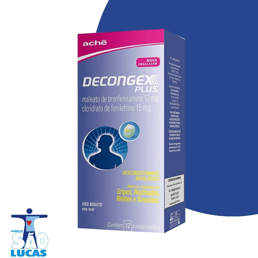 Decongex plus 12cpr É UM MEDICAMENTO. SEU USO PODE TRAZER RISCOS. PROCURE O MÉDICO E O FARMACÊUTICO. LEIA A BULA. SE PERSISTIREM OS SINTOMAS, O MÉDICO DEVERÁ SER CONSULTADO.