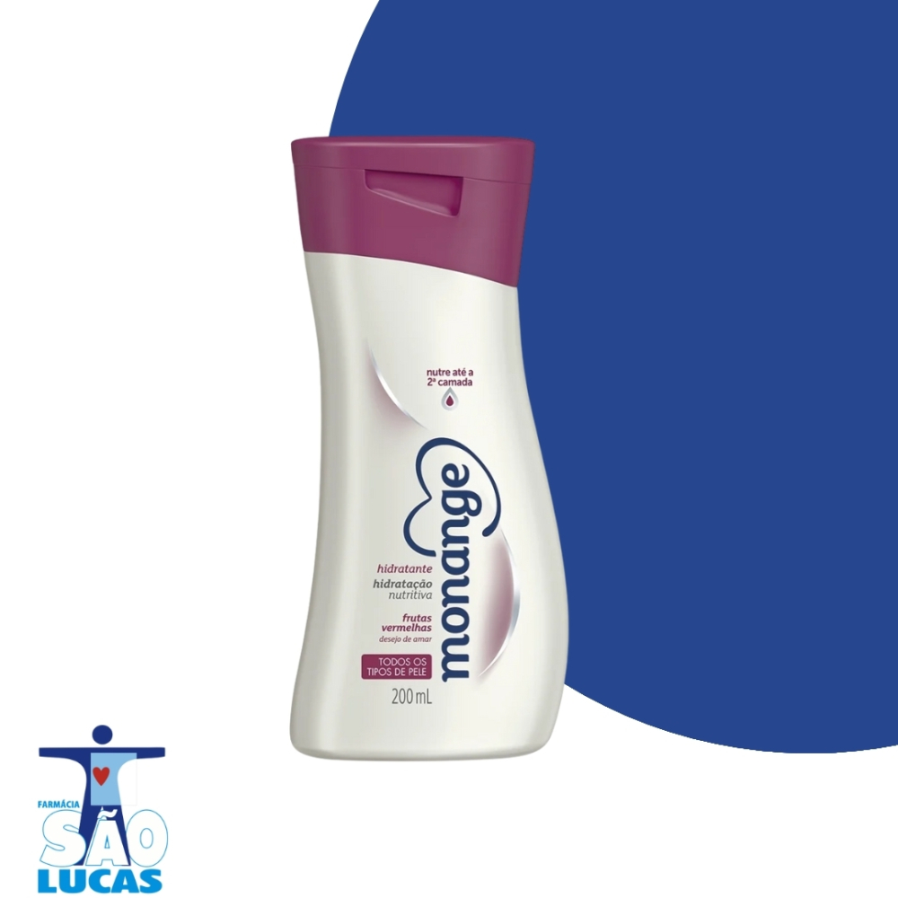 a Loção Hidratante Corporal Desejo de Amar da Monange, um produto de 200ml com fragrância marcante e textura leve, que hidrata profundamente, deixa a pele macia, sedosa e perfumada, ideal para uso diário,